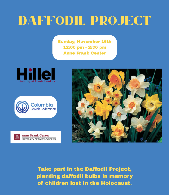 Since 2021, Columbia Jewish Federation/Hillel has proudly participated in The Daffodil Project, which seeks to plant 1.5 million daffodils as a Living Holocaust Memorial for the children who perished during the Holocaust and for those currently experiencing humanitarian crises. This act of remembrance is especially vital today as the world faces an increase in anti-Semitism.