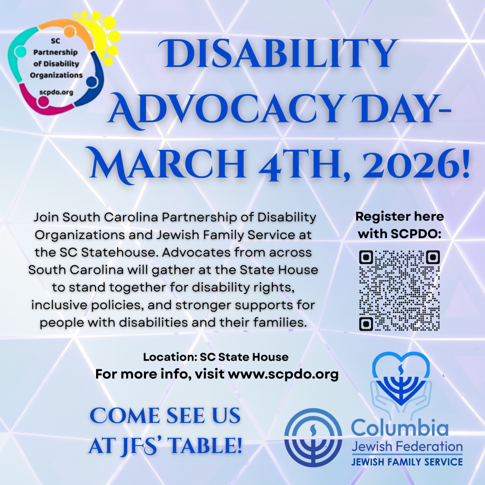 Join South Carolina Partnership of Disability Organizations and Jewish Family Service at the SC Statehouse. Advocates from across South Carolina will gather at the State House to stand together for disability rights, inclusive policies, and stronger supports for people with disabilities and their families.