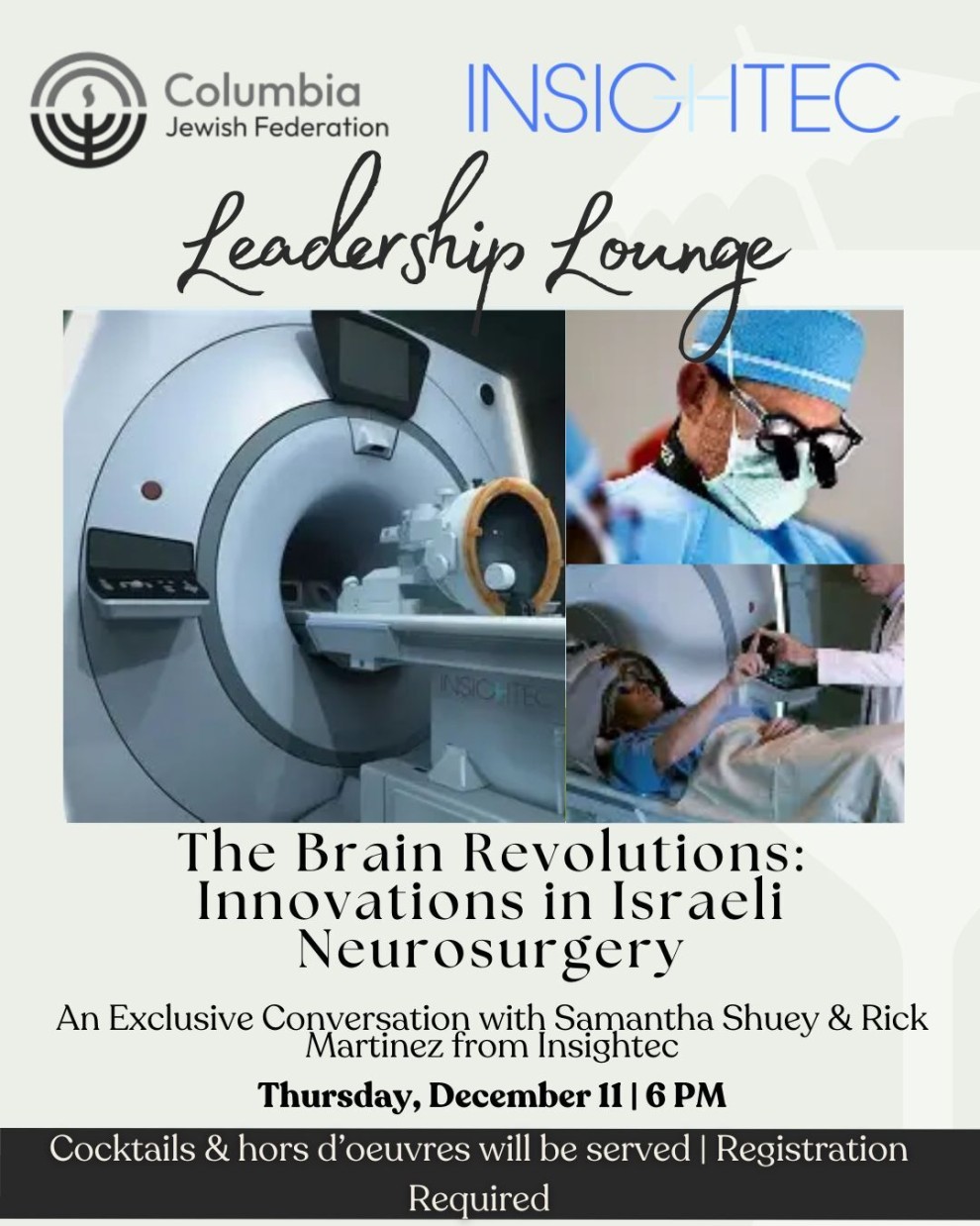 Join us for an inspiring evening exploring how Israeli innovation is transforming the future of medicine. Representatives from INSIGHTEC, a global leader in non-invasive medical technology, will share how their groundbreaking Exablate® platform uses focused ultrasound and MR-guided precision to treat neurological disorders such as Essential Tremor and Parkinson’s disease, without a single incision.